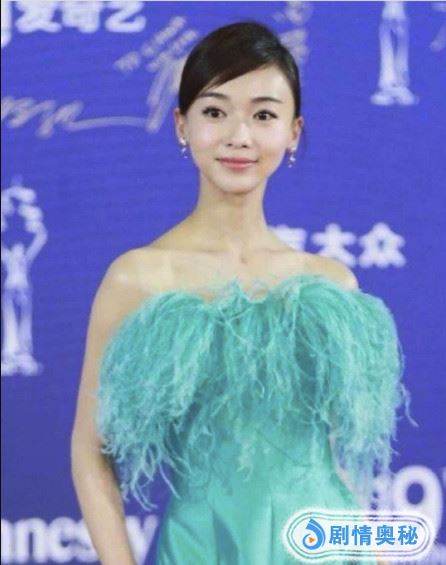 近年来大火的吴谨言,身穿一身青绿裙子出席活动