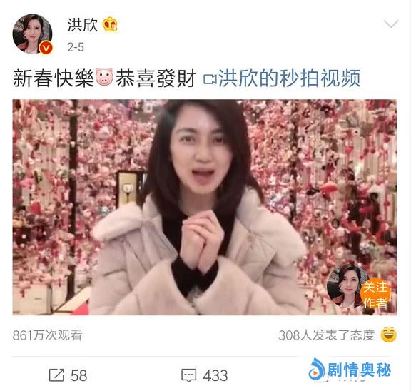 除此之外,洪欣在春节期间发布的一条拜年视频同样疑点重重,这段视频里面更是暗藏着玄机。因为往年洪欣法拜年视频,都是一家四口齐上阵,但今年春节期间洪欣发的这条视频,却只有洪欣独自一人,未见张丹峰的身影。