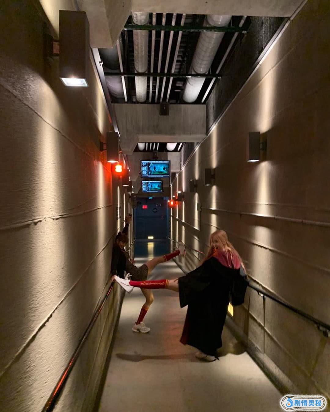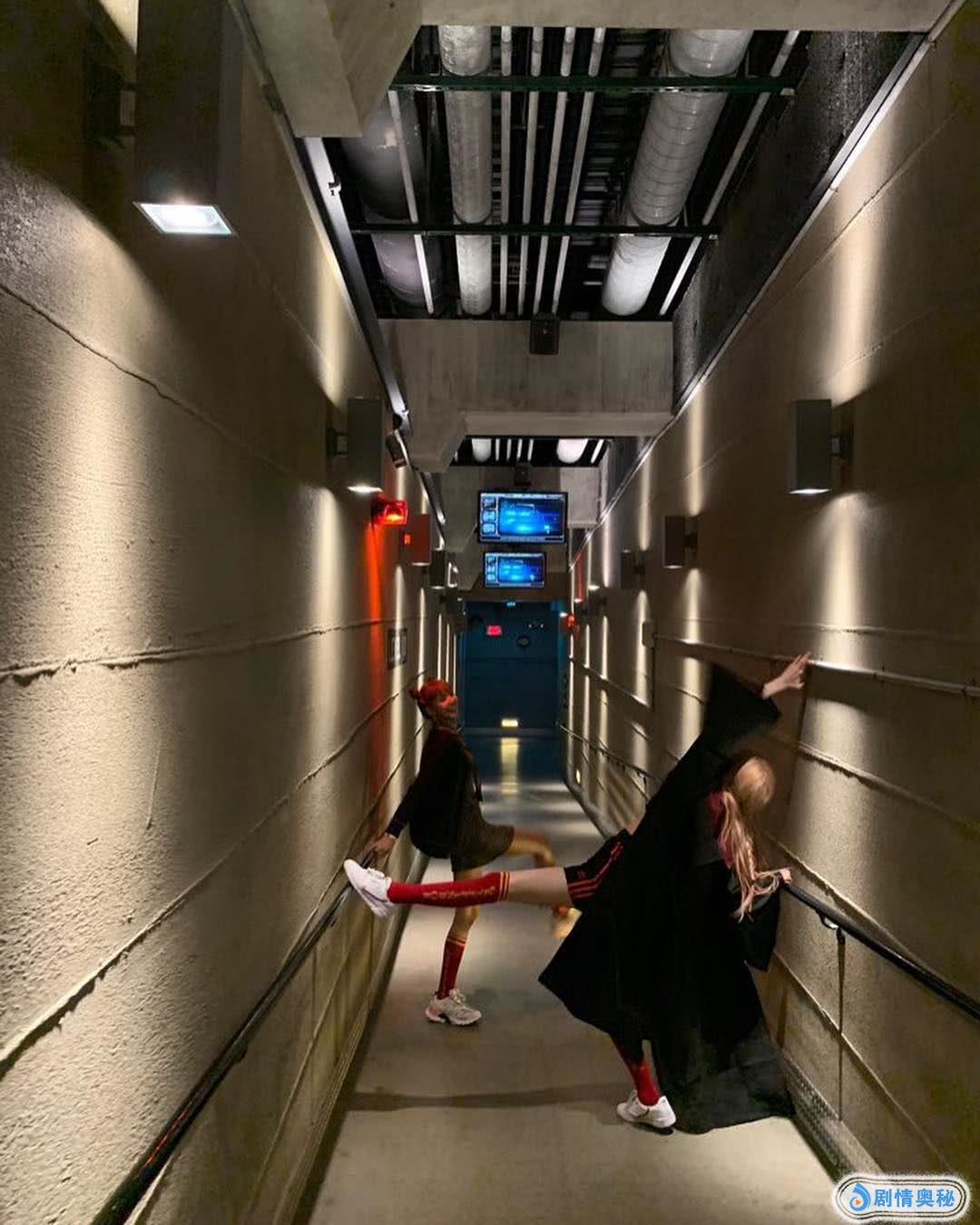 后面两张都是两人幼稚地在过道里比腿长!只见她们开在栏杆上,把腿放到另一条栏杆上,大长腿立现,而LISA更是调皮地把腿抬高。167cm的LISA与168cm的Rose比腿长,都是身材比例绝佳的两个,真的很让人羡慕嫉妒呀~然而,当粉丝们看到她们的衣服,都纷纷表示“不可以”!