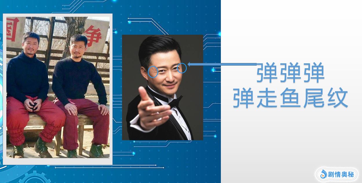解析看眼角,都说作为武打演员的吴京,的确是一名硬汉,如今当演员和导演的他,虽然说已经年近四十,但是长时间的剧组高强度工作,他已经很疲惫了,脸上增加几道眼角是在正常不过的。但是替身的眼角来看,的确是让人映像“深刻”,看过吴京电影的人都知道,吴京的眼角只在他微笑的时候,才会展露出来。但是微微一笑,并不倾城,眼角是不会展露出来的。