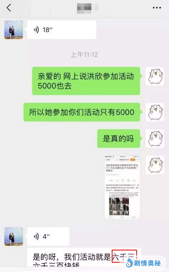 有网友向某活动负责人确认洪欣出场费一事,该负责人则证实了相关说法,并表示:“我们的活动就是六千三百块钱。”对于这样的事实,网友纷纷表示震惊。因为6300块的出场费真的无法和洪欣这样的身份和知名度划上等号。