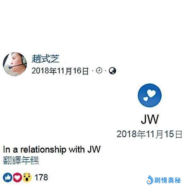 赵式芝与JW的关系明明非常亲密,却又对外宣称与JW只是还朋友的关系,这与多年前她与杨如芯的高调截然不同,这其实也是有原因的。早前就已经有媒体对JW进行了起底,并发现2018年赵式芝与JW火速好上的时候,JW其实是有女友的,且至今JW也没有与女友分手,重点是JW的女友已经获得了JW家人的认可,赵式芝的突然出现反倒是令JW家人有所反感,有这一层关系的存在,JW也并未与女友分手,所以三人之间的关系就显得略微妙甚至复杂。不过对于赵式芝来说,自己与JW开心就好,也顾不得那么多,当然对外还是要低调,因此也只能将JW称为好朋友。另外JW与赵式芝两人是小学同学,也是在这大半年内才开始有往来,没想到这把火一点就燃了。