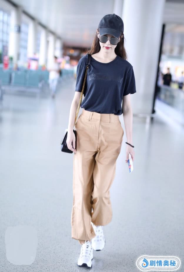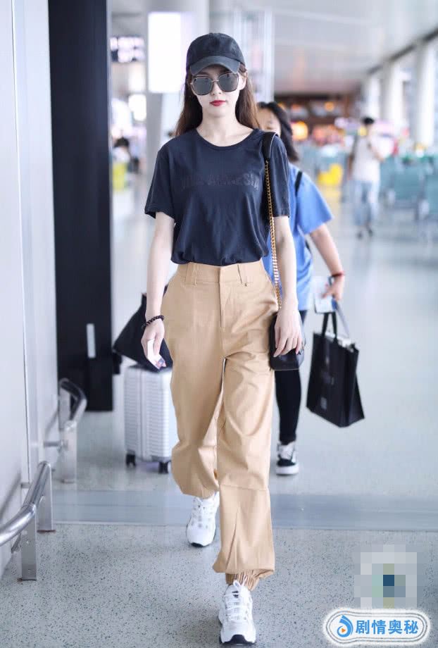 在私下的时候,唐嫣打扮在夏天清爽又好看,像她穿了一件黑色T恤,就是很简单的感觉,她肤白胜雪,这次搭配浅卡其色的裤子,看上去就更加时髦了,她的身材还这么好,穿着这样的衣服休闲大方呢。