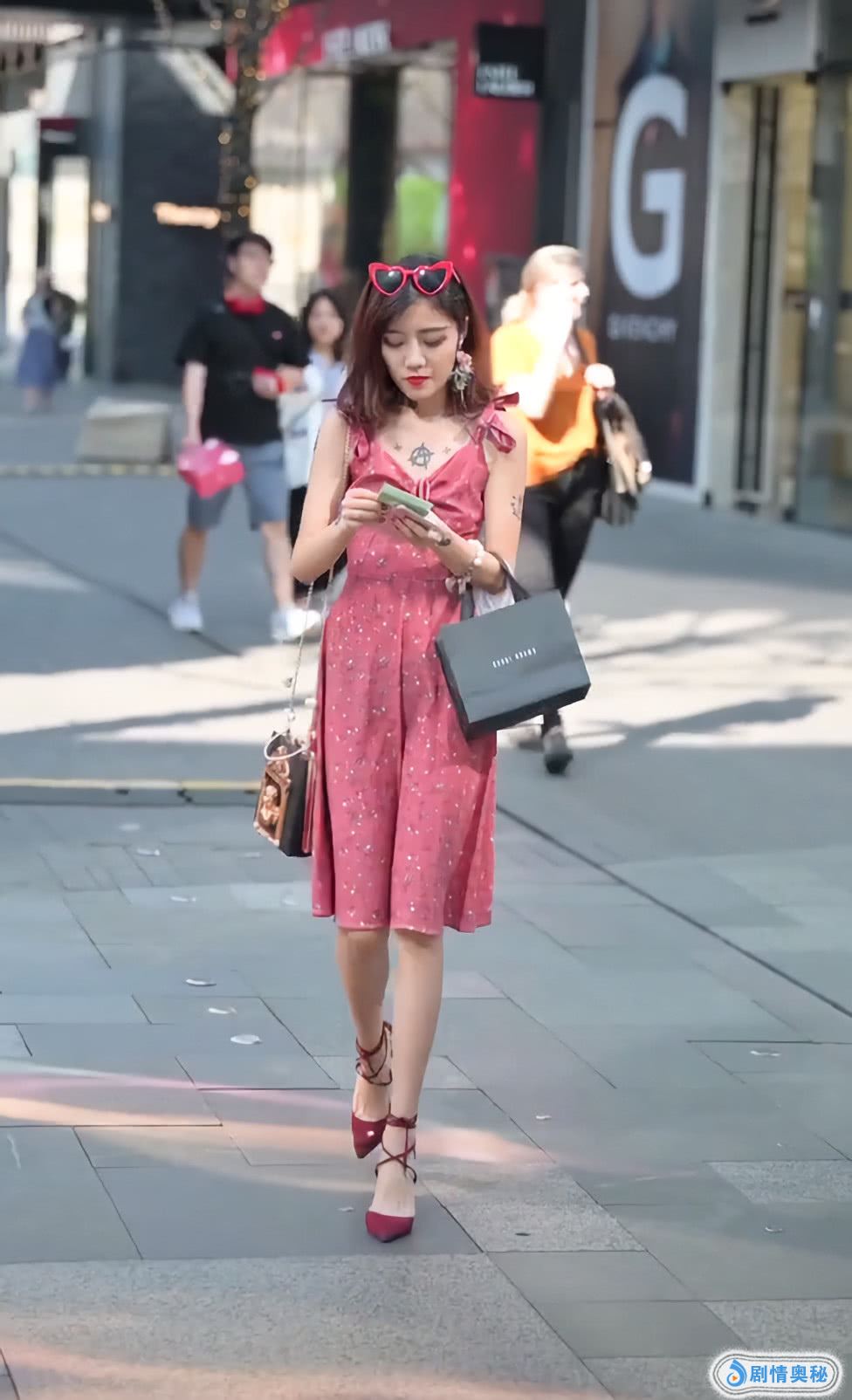 不过看到后面,只有80斤能驾驭,她的裙子后面是这种比较紧绷的感觉,所以适合比较瘦的女孩子呢!这个美女的打扮在大街上很吸引人,你喜欢她吗?