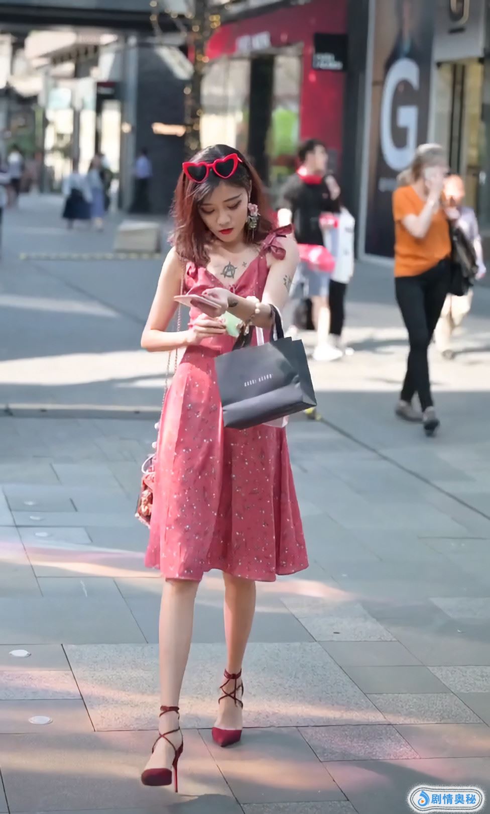 美女一转身,她手臂上的纹身吸引了我的关注,上面是一个道字,难道她信佛?这位美女打扮如此现代,穿着的样子大概每个男孩子都爱。虽然她的一身打扮十分花哨,但是没有丝毫土气,也是没谁了。