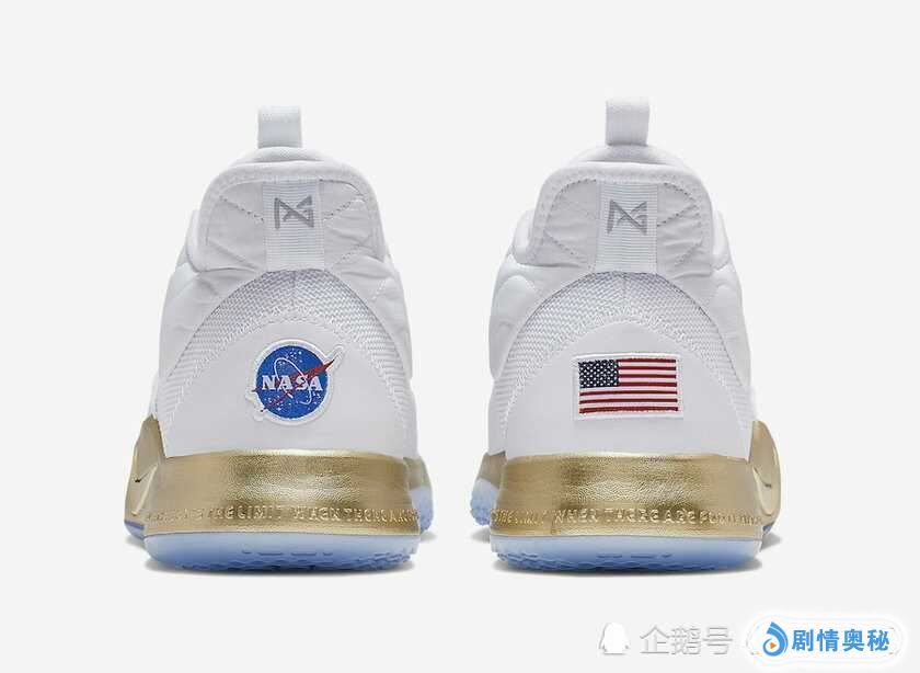 耐克推出的PG3“NASA”就是为了纪念登月50周年,以及致敬人类对太空探索的伟大,探索永无止境,这款PG3“登月版”最大的亮点就是把NASA的标识跟美国国旗图案印在鞋跟后,点名主题!