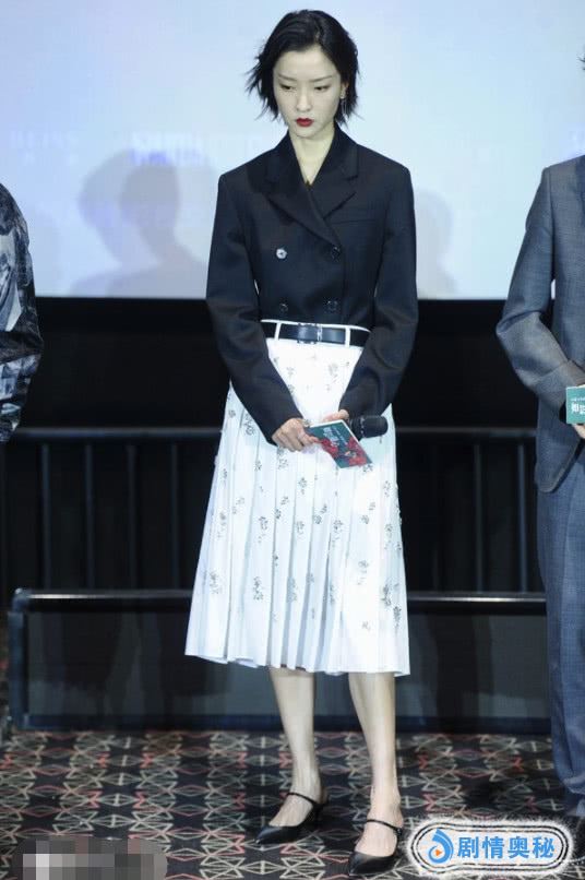 当天杜鹃身穿一件黑色西装搭配上水钻百褶裙,看起来高贵优雅