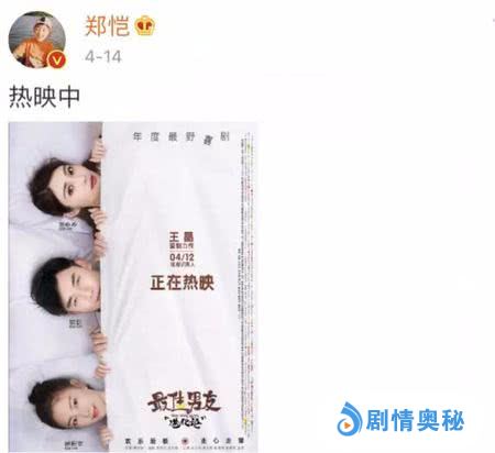 日前,由王晶执导,郑恺,张雨绮和徐冬冬主演的电影《最佳男友进化论》正在热映中,不过,该片上映以来票房和口碑并不理想,截止目前,该片仅有千万入账,不知道够不够几位大咖的片酬,而因为郑恺拒绝为新片宣传也遭到片方的怒怼,场面可谓是一度非常尴尬,也有网友表示:既然知道影片质量不行,为何还要接,时隔3天之后,郑恺也勉强提了一句这部电影,并晒了海报。