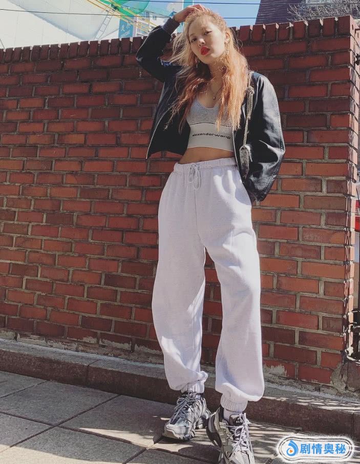老爹鞋泫雅很会搭配,这次她选择了一条相对于比较休闲的灰色运动裤,她搭配了一双深灰色老爹鞋,两种颜色融合在一起,特别潮流,上半身是紧身的露腰上衣,穿上去就更加时尚了。