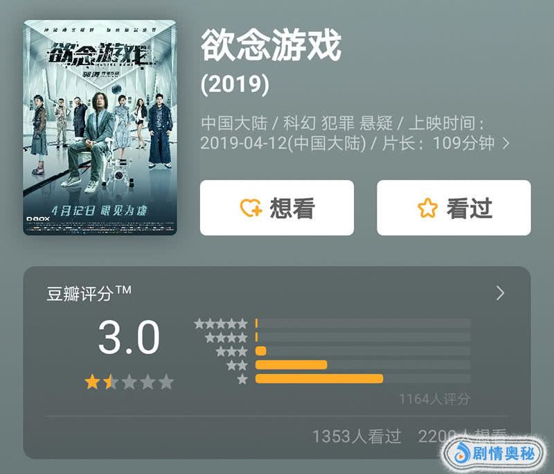 万万没想到,即便也有观众称《欲念游戏》只能算作儿戏科幻片,郭涛饰演的科学家也存在气质不符等问题,但3.0的低分却是大家根本猜不到的,而这个分数多少也影响到了该片的票房。而截止到本文发布时间,豆瓣仍没为上述的两部影片打出最终得分,不知道要等到什么时候。