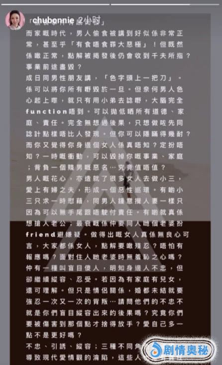 作为郑秀文的朋友朱庭萱则在自己的个人设计软件上面贴出一片长达800字的问诊,而文章中字字都在骂许志安说他花心,为了一时的痛快而堵上自己的所有,还要背上“贱男”的骂名,这样的事情看起来真的十分的不划算,并且表示黄心颖毫无羞耻心可言,难道这样子做就不怕说会遭到报应吗?