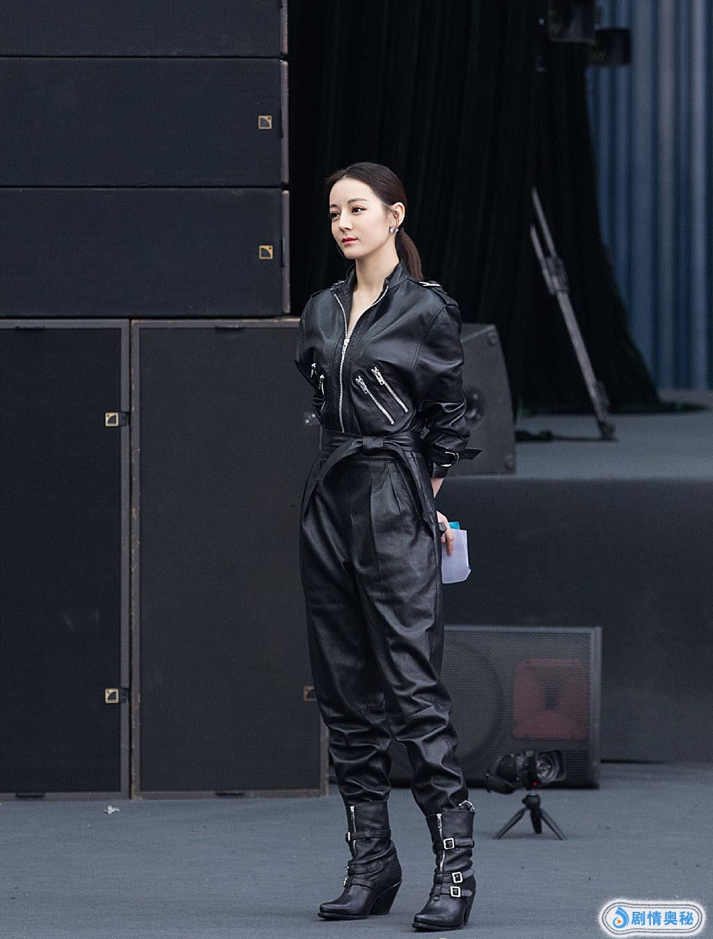 只见她身穿一件削肩的黑色上衣搭配黑色的阔腿短裤,腰上挂上一个小小的皮革包包,为整个造型增加一股可爱的气息。一双过膝的黑色高跟长靴尽显大长腿,同时还保暖呢!长发似乎没有太多的改变,别在耳后,显得干练又精神。