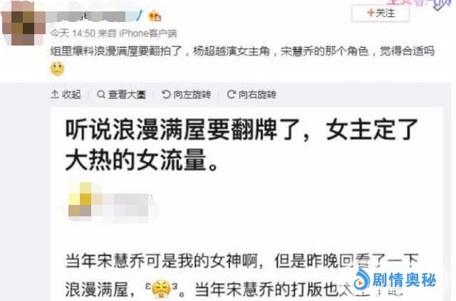 现在的剧真的是越来越让人觉着没救了,反派完了国内的古装,武侠和玄幻剧以后。如今也开始翻拍国外的偶像剧了,最近关于浪漫满屋要被翻盘的消息也是越来也多了。其次连主演也都爆料了出来,很多人对于杨超越出演女主的角色,都抱有质疑的状态啊,虽然她漂亮也够火,但是演技和宋慧乔比,差的不是一星半点啊。