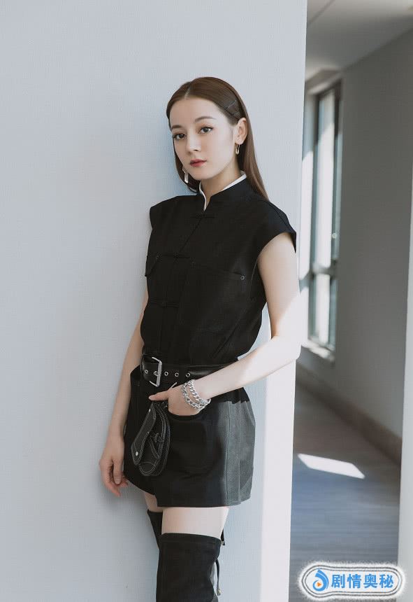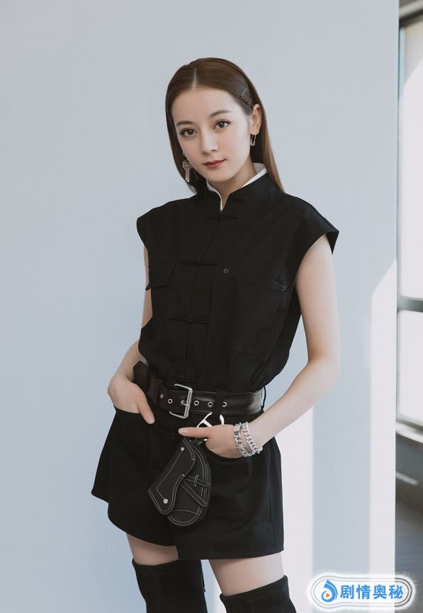 中国风的黑色短袖,搭配黑色热裤,再加上黑色的长腿靴,迪丽热巴这身look,是不是满分?而这造型真的让人看了还想再看。