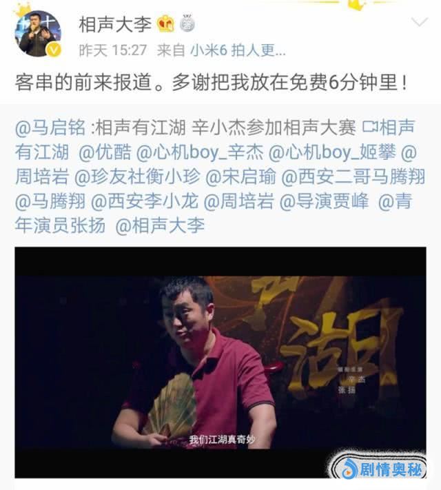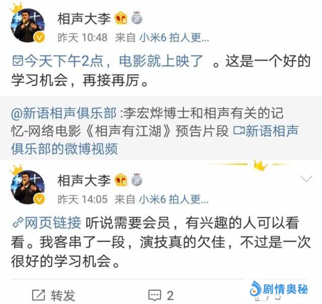 说起来李宏烨也是够冤枉的,因为在电影《相声有江湖》中,他完全就是一个客串角色,在开头和结尾出现了一会,但也算是其首部电影了。而且,从李宏烨的社交平台来看,他对自己的首部电影非常满意,甚至连发文章,从8个角度来强推《相声有江湖》。