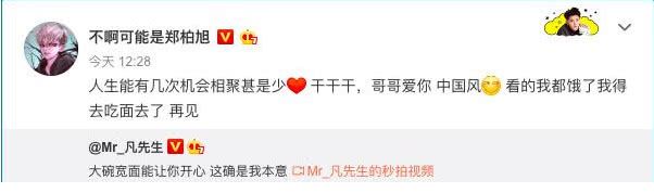黄子韬配的文案称“人生能有几次机会相聚甚是少,哥哥爱你中国风。”