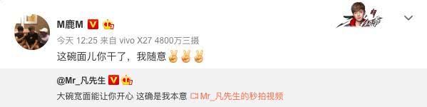 许多圈中好友都帮忙转发宣传。鹿晗配的文案称“这碗面儿你干了,我随意。”