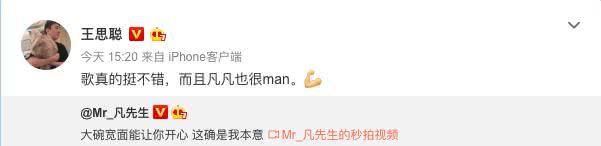 王思聪转发并配文“歌真的挺不错,而且凡凡也很man。”