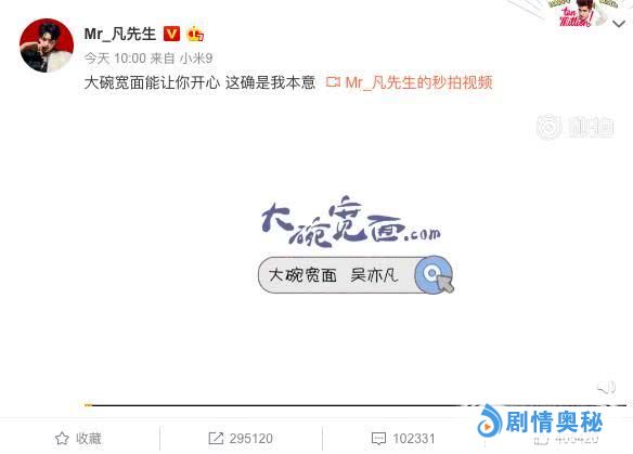 吴亦凡配文道:“大碗宽面能让你开心,这确是我本意。”走心。