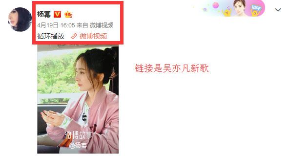 杨幂单独发布微博故事帮吴亦凡宣传,还附上了歌曲链接,十分贴心和走心。