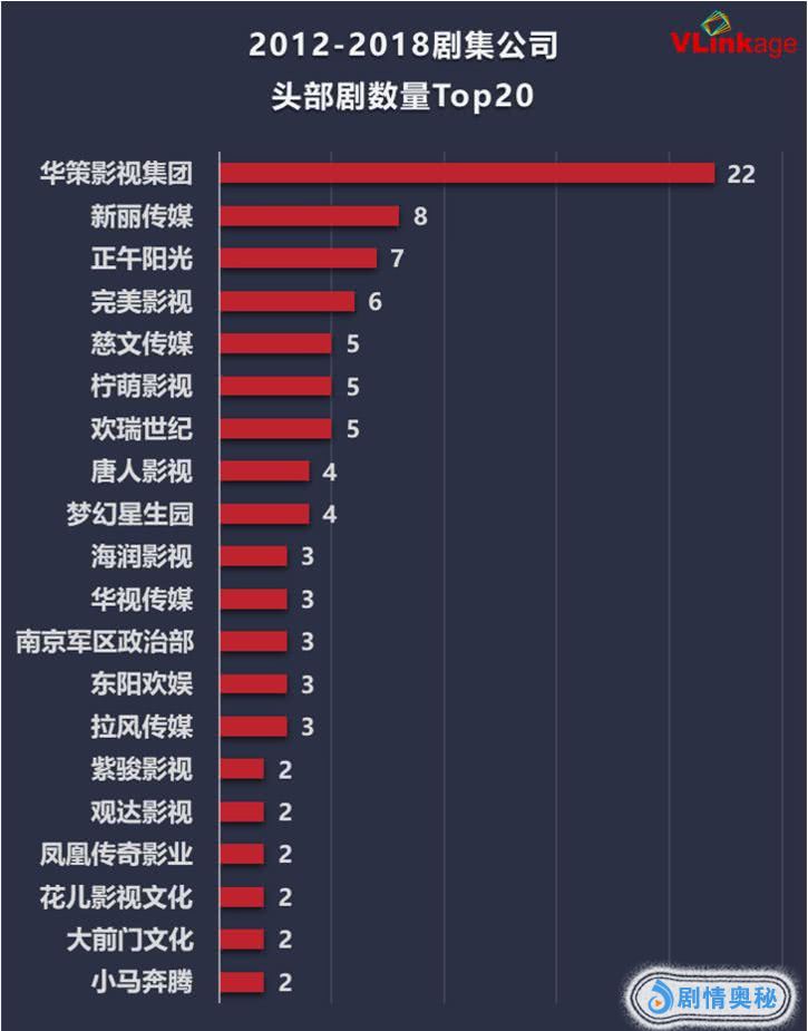 2012年-2018年每年流量前20部剧集,选取最主要一家影视公司进行计算;