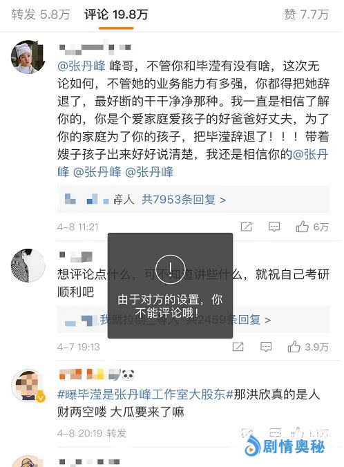 在昨日的澄清声明中,不难看到,张丹峰将与毕滢之间的这些来往,全部澄清,并且表明这一切都是工作的原因。虽然说澄清了,而吃瓜群众却并不买单。其实写道这里小编是想哈哈大笑的,张丹峰和毕滢之间的事情,还是与妻子洪欣之间的这种关系,都是人家家里的事情,有些吃瓜群众却是弄的自己就是这三者的家大人一样,为他们那个鸣不平,到了如痴如醉的地步,这也是在今日张丹峰为什么关闭了微博评论的原因了。