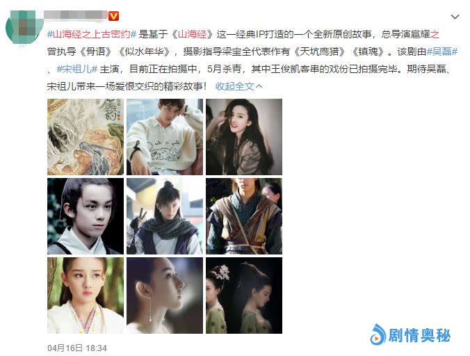 由宋祖儿、吴磊主演的《山海经之上古密约》正在拍摄,虽然官博并未正式官宣,但各大知名博主都直言由这两人主演,可谓呼声极高,该剧也是全新打造的原创剧本,虽然之前也有两部系列剧,但这一部是倾情打造,也较为大众关注的一部古装神话剧。