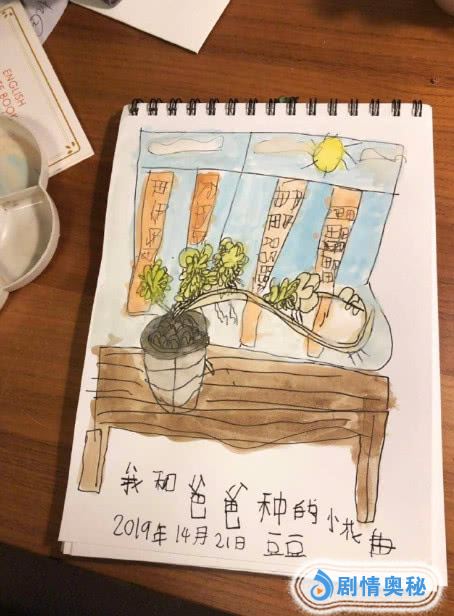不过,再看小土豆画作上的文字内容,就让姚晨有些不淡定了,其中对于这幅画小土豆便附文解说:“我和爸爸种的小花苗,2019年14月21日,豆豆。”认为一年有14个月的小土豆,这超强脑洞也是没谁了。