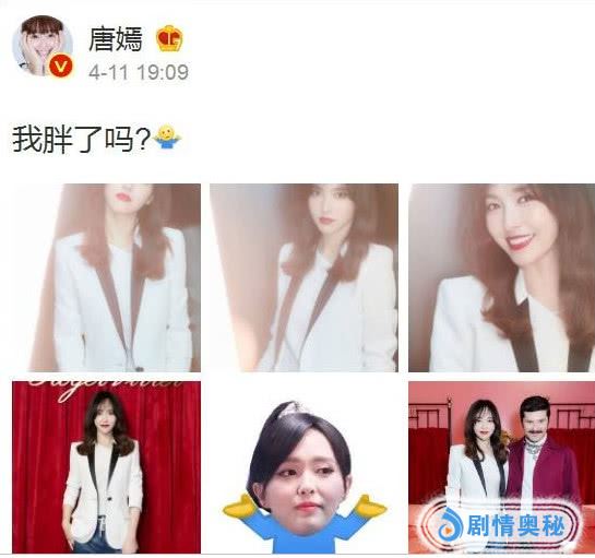 而唐嫣对长胖这件事似乎并不排斥,还发微博主动回应这件事,调皮的表示:“我胖了吗?”后面紧跟着一张无奈脸。