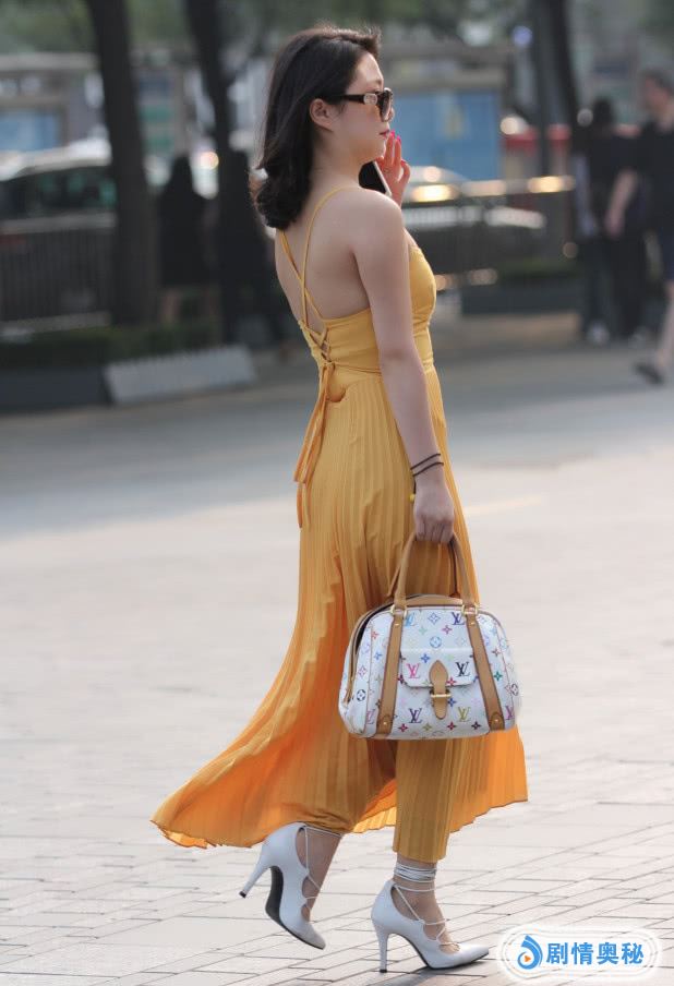 再仔细看看她的高跟鞋,这种“米线鞋”要红遍街头了,这双鞋子是白色的,这种绑带的装饰,看上去就像是米线一样,穿上去特别时髦,而这种鞋子不是一般人可以穿上去的,感觉非常花费时间。