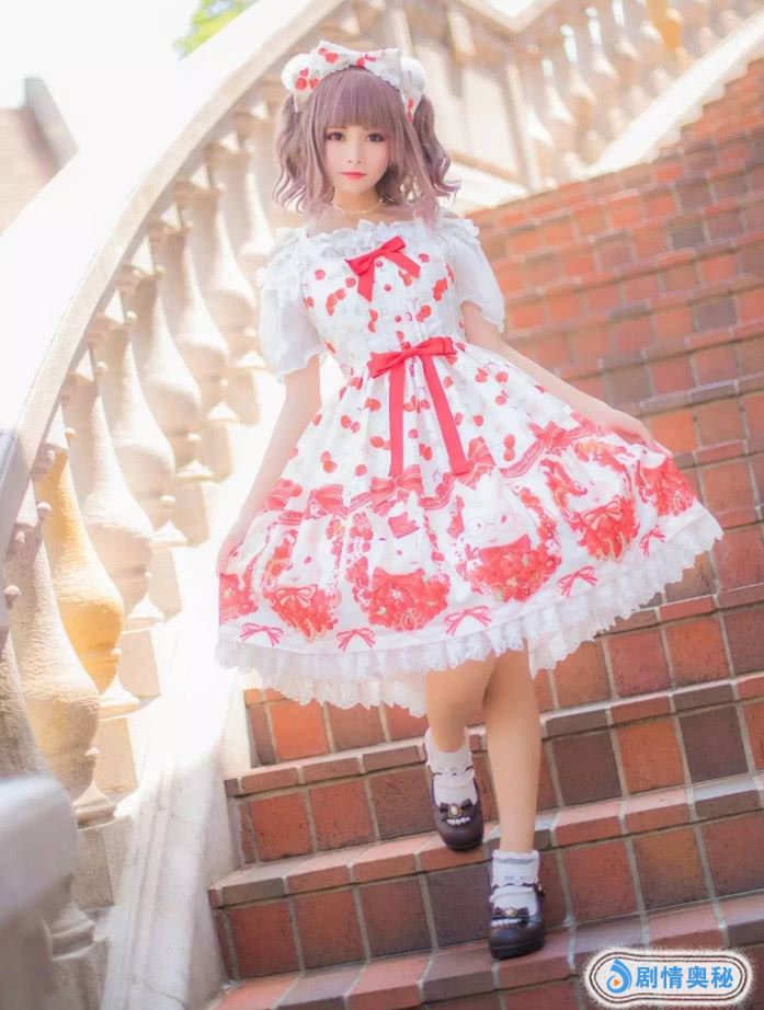 一般在很多人眼里lo娘就是这样的,看上去非常可爱,穿的衣服也是很复古的,就是那种宫廷的衣服,像这个女孩子,她穿的就是有点宫廷风格的裙子,搭配一双黑色皮鞋,看上去就更时髦了。