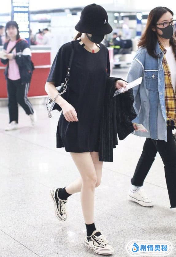 近日,热巴出现在机场,当天由于天气炎热,热巴一件简单的黑色短袖,加上帽子亮相,细长白腿颜值逆天