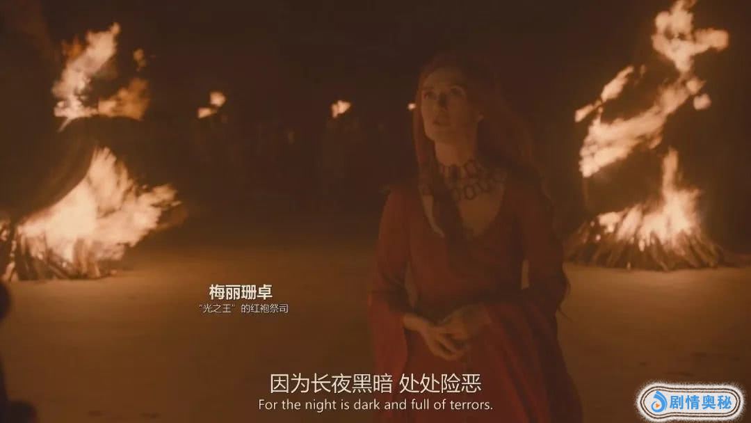 琼恩雪诺,是一个史塔克,他和守夜人宣誓,激起了观众心中的荣誉、忠诚和信仰。“长夜将至,我从今开始守望,至死方休。我将不娶妻、不封地、不生子。我将不戴宝冠,不争荣宠。我将尽忠职守,生死於斯……我将生命与荣耀献给守夜人,今夜如此,夜夜皆然。”这三个角色承载了观众对翻盘的期待。