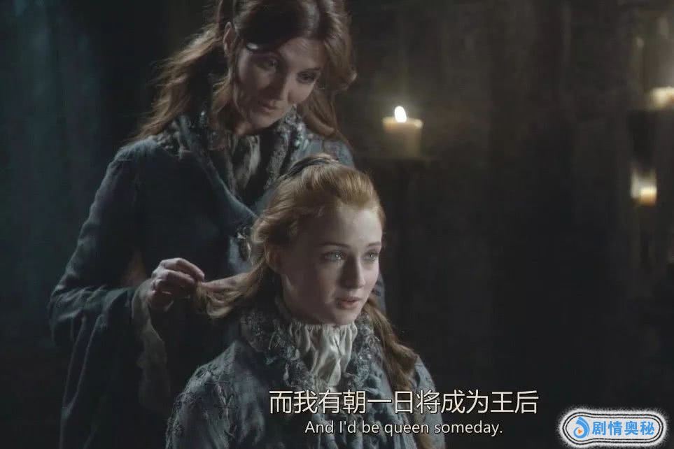 珊莎·史塔克,这个角色一开始并不受欢迎,甚至很多观众希望编剧把她写死,结果她活下来了,是全剧最让观众刮目相看的角色。一开始珊莎是清高天真的淑女,一心梦想着成为王后,后来家族被血腥屠杀。她的丈夫,从暴君乔弗里,变成侏儒小恶魔,之后她被交换到了变态小剥皮手里,一再受辱,被卷进各个旋涡,经历了残酷的教育,孤独求生存,最终成为了气场强大、有谋略的女人。