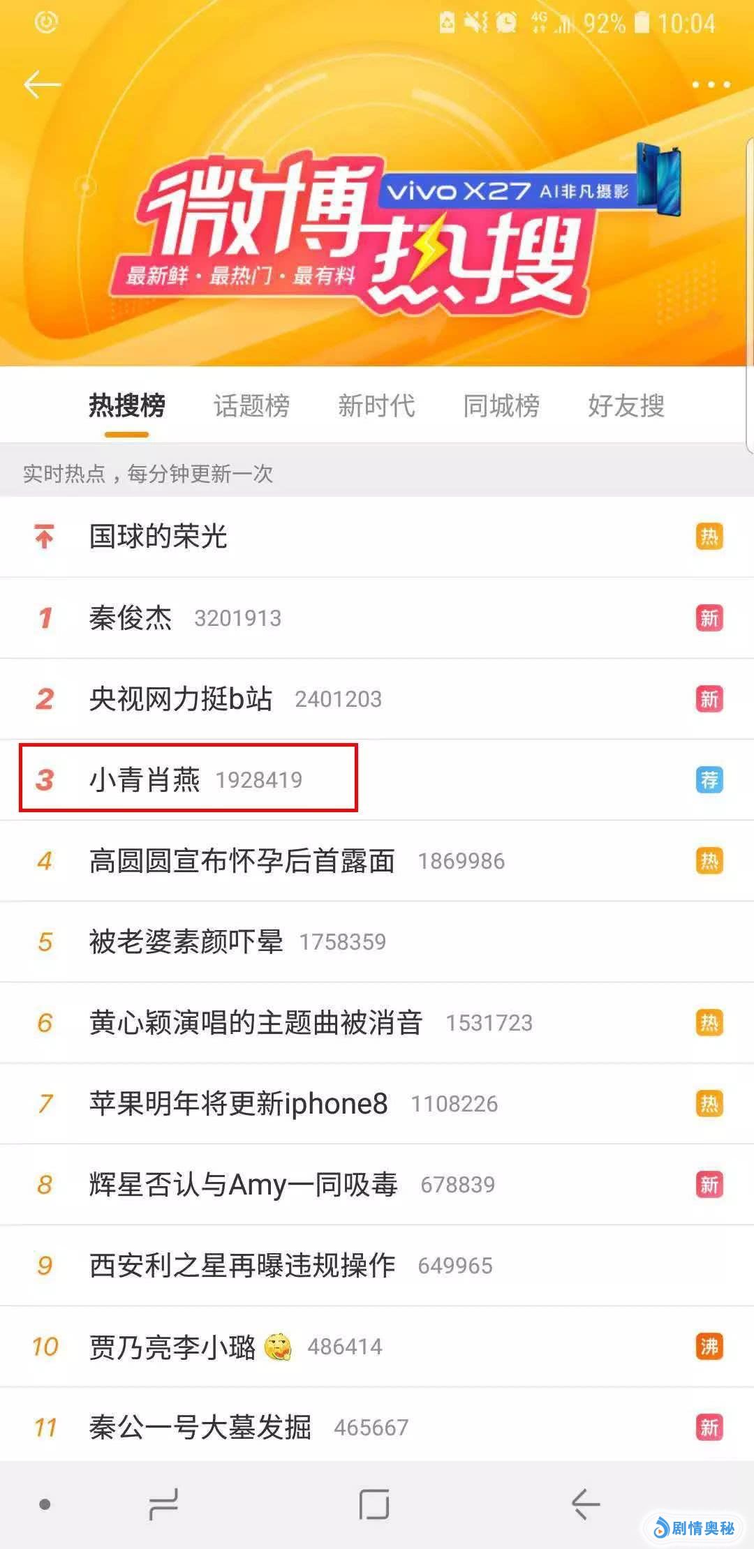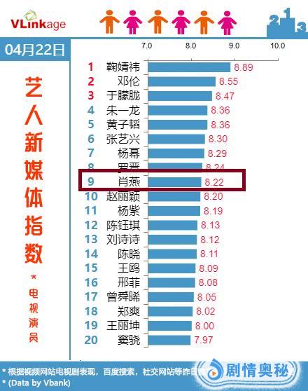 自4月3日开播以来,《新白娘子传奇》的剧集热度一直占领着爱奇艺热度榜榜首。小青这个人物的出彩也给肖燕带来了可圈可点的流量热度,不但多次登上Vlinkage艺人新媒体指数榜单,更在明星势力榜新星榜中稳居前两名。而在微博平台上,“小青肖燕”也随着剧情的展开登上了热搜。