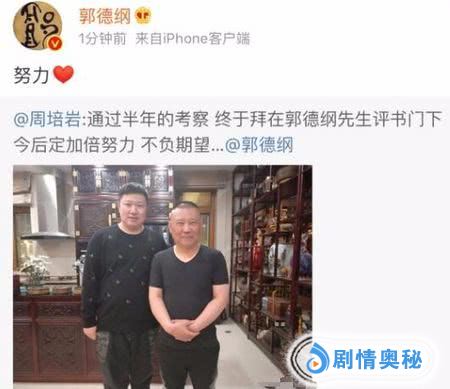日前,在张番,刘铨淼之后,郭德纲又收了几位曾经参加过《相声有新人》舞台的几位选手为徒,他们分别是:章绍伟、孔挚杰,高玉凯和王善勇四位青年相声演员,能够通过老郭的考核,加入德云社,说明几人还是非常有实力的。而最近,郭德纲再次宣布,周培岩也通过考核,成为郭德纲评书门下弟子,可以说让德云社又添一员大将,这也是自《相声有新人》节目开播以来,第7位拜入郭德纲门下的弟子,也有不少网友感叹,郭德纲可以说是下了一盘大旗,几乎三分之一的选手都被其收入麾下。