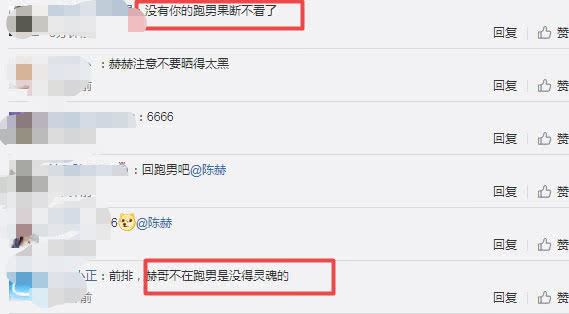 为此,当得知陈赫不再参与录制新一季跑男之后,网友也纷纷留言:“没有你的跑男果断不看了”、“赫哥不在跑男是没有灵魂的。”