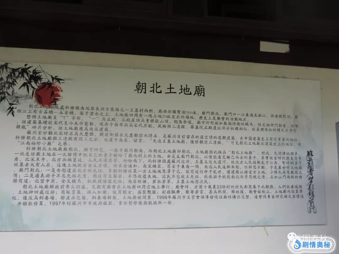将庙门朝北,以示告慰北方祖先之意。庙朝北面河,东通吴淞江,西连独墅湖。