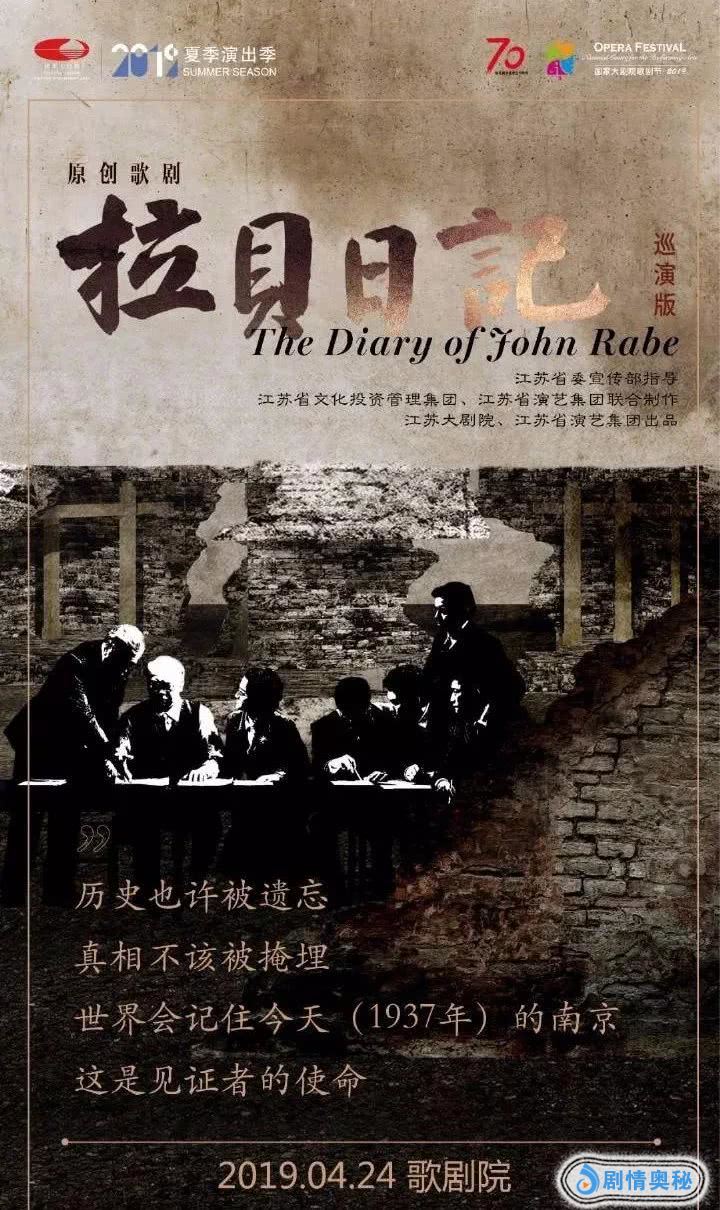 江苏原创歌剧《拉贝日记》巡演版4月24日在国家大剧院首演后,将于7月赴德国柏林国家歌剧院、汉堡易北河爱乐音乐厅、奥地利维也纳罗纳赫剧院进行5场演出,将这部战争安魂曲、和平的光明赞带给欧洲观众,也向世界展示中国歌剧的艺术魅力。