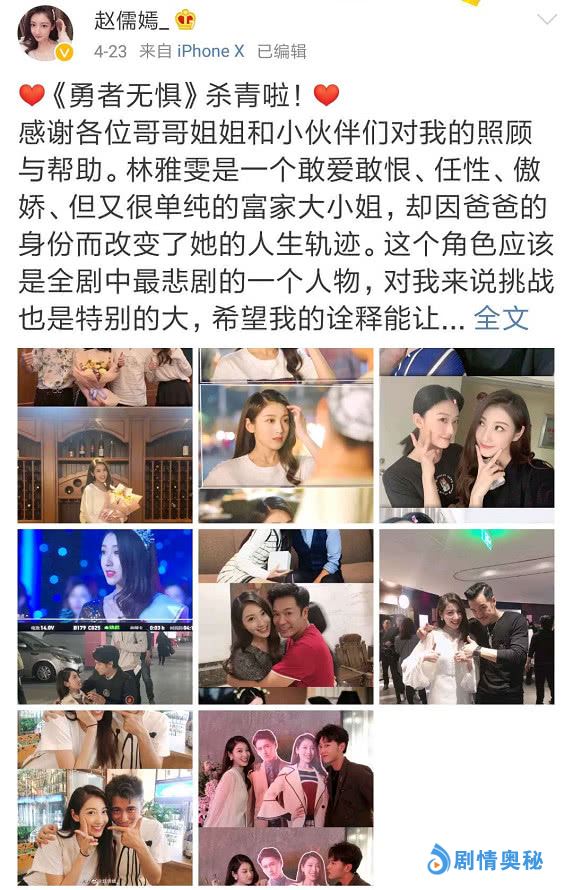 但工作室除名的做法很快就被发现只是一个烟雾弹,因为在4月23日晚,有一位名叫赵儒嫣的女演员在微博上晒出一组剧组杀青照,照片中除了她和张丹峰以及其他同剧组演员的合影外,还有一张多位演艺与毕滢的大合影,而作为经纪人的毕滢竟霸占C位,出现在照片最最显眼的位置。
