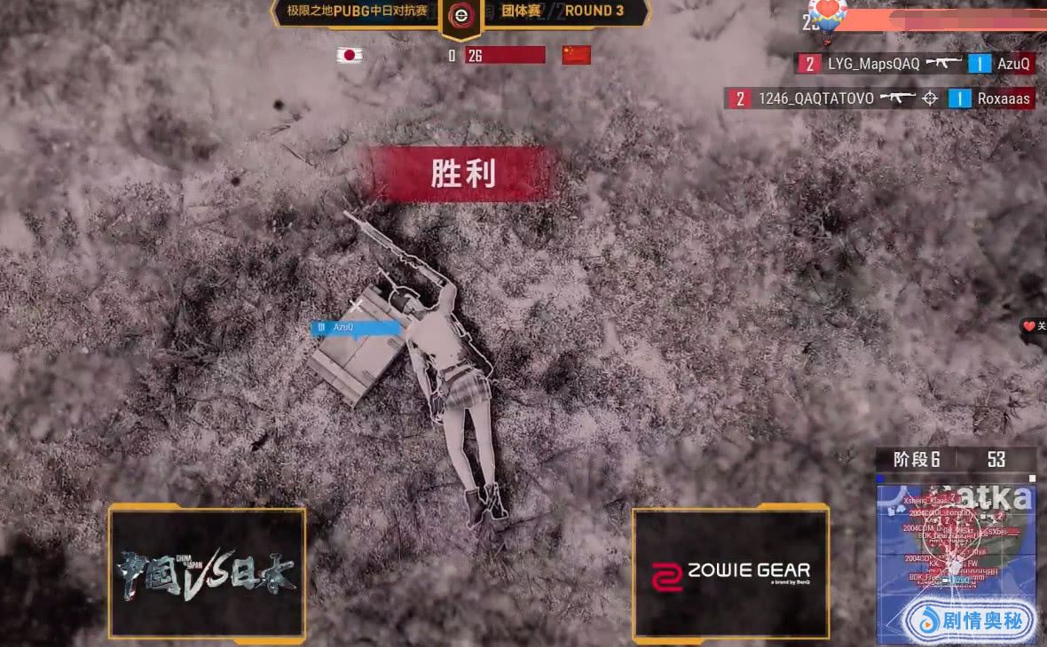 而到了比赛的第三局当中,更多有趣的事情发生,就是在最后的毒圈当中,因为大部分的日本选手都是在圈外,所以在圈内的中国选手们也是很快把对面逐一击垮。而这个时候就仅剩一位日本队员,
