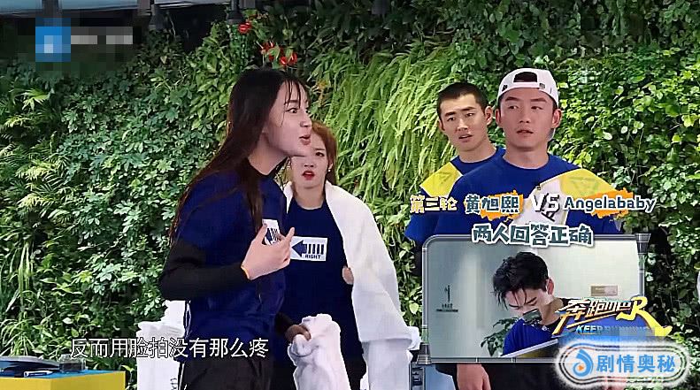 baby与新人黄旭熙一组,因为没有猜对答案,最终两人都被弹飞出去。一般来说,被弹飞出去后,都是背部朝下地落入水中,但baby却是脸朝下,怎么飞出去就是怎么落入水中。看到这个画面,其他嘉宾都吓倒了,李晨更是一脸担心地大喊了一句“oh my god~baby你拍在里面了~”