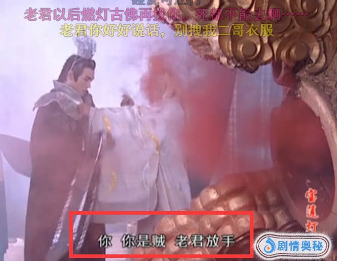 而沉香酿成的大祸,却让杨戬去处理,杨戬很快就已经查到了出处,但是杨戬第1件事去做的其实是在太上老君的炼丹房当中查看事情原委,究竟是发生了什么样的事情?而杨戬做出这件事情的时候,刚到太上老君的炼丹房当中,看到太上老君的样子就喊了一句“老君”,就是这一句让太上老君陷入了痴呆状况,直接都认为他是偷丹贼。