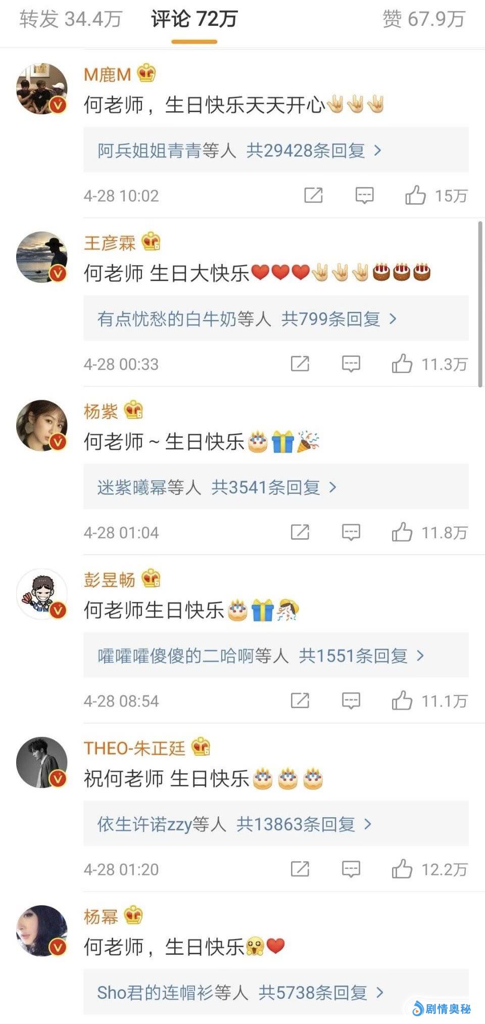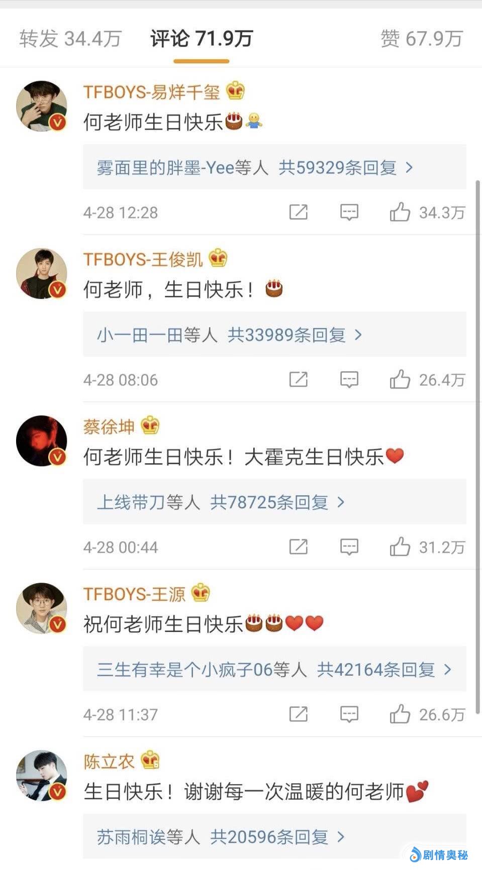 四月二十八日是何炅的生日,每年到了这一天娱乐圈的很多明星都会在微博上给何老师送上祝福,也充分证明的何老师在娱乐圈中的好人缘,这也无可厚非,这些年在圈中做人做事,包括业务能力,也都是大家有目共睹的,所以,收获这么多祝福也很正常。只不过,有人居然在拿这些祝福比流量,也是有一些扫兴和不懂事了,比流量当然也是流量艺人家的事情了,比如TFboys,三小只的粉丝一直都在较劲。
