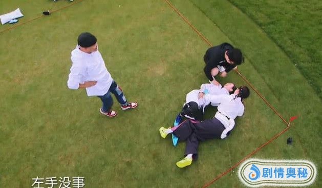 玩老鹰抓小鸡的时候在汪峰和包贝尔抱在一起,那个时候包文婧在从正面扯章子怡尾巴时,章子怡突然腿软包文婧顺势就压在她身上,两人双双倒地,章子怡先摔倒。