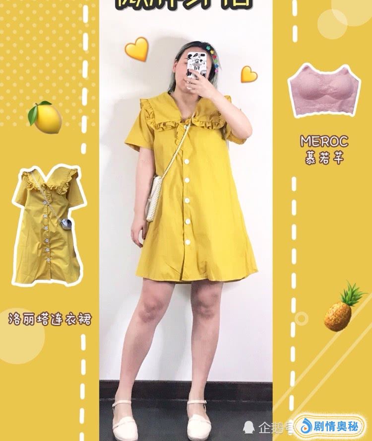 洛丽塔连衣裙。这件小黄裙超级无敌的显白,胸前和领子是有做花边的,真的就是少女专属。很遮肉,包容性很强。领子的设计非常的可爱,很减龄。