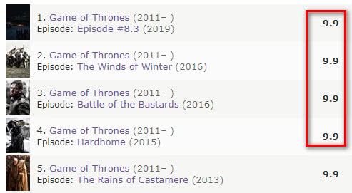 但在IMDb上,只有五集达到9.9分。