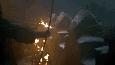 奔跑的雪诺想要阻止夜王复活尸体,也是冒险片常见的“千钧一发”时刻。