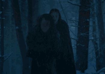 但和珊莎依靠在一起躲避异鬼时,珊莎给了他一个期待的眼神。