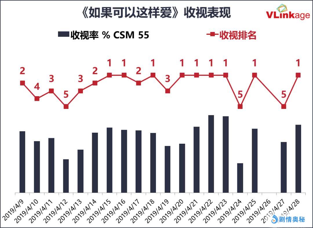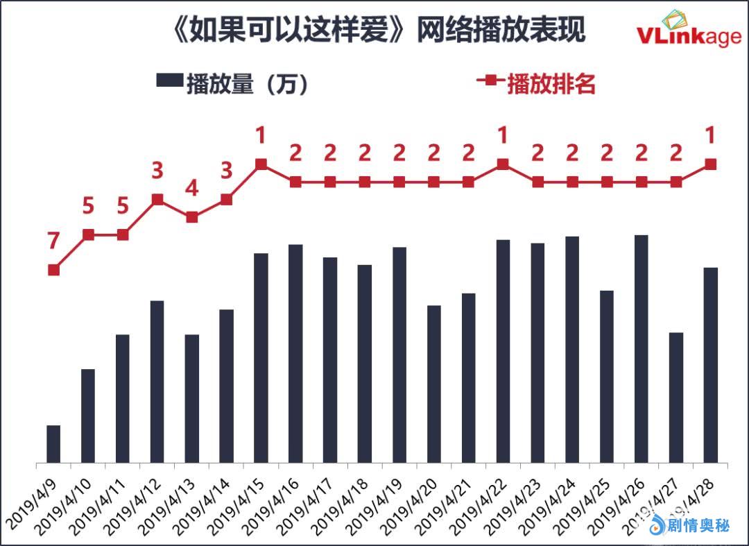 收视率和网播量,是评价一部电视剧最为基本的两大数据指标。自4月9日开播以来,《如果可以这样爱》的收视率连续多日破1,荣登电视剧收视率榜单榜首。在今年电视剧大盘整体低迷的市场环境下,能取得这样的收视率,足见该剧的收视号召力。